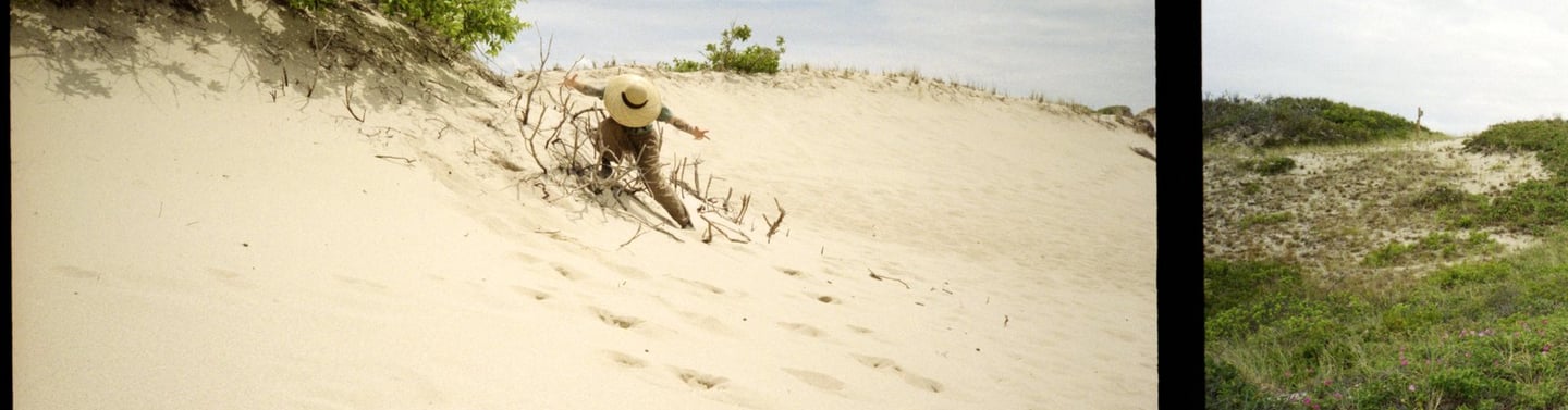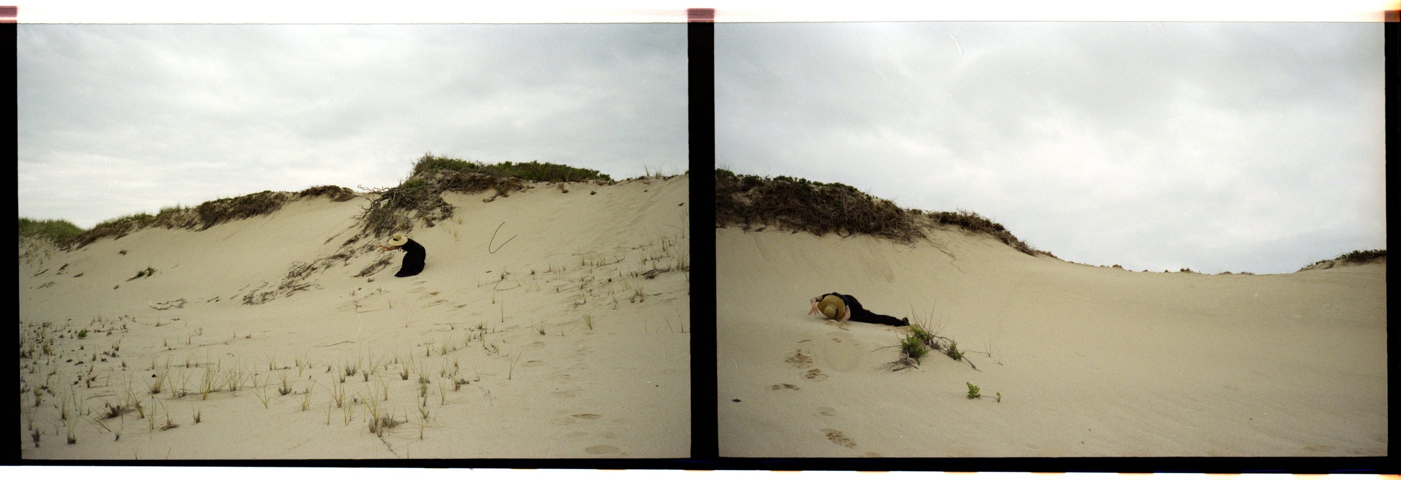 Dune Dwells is a conceptual, site specific work created throughout various sites of land and sea on the National Provincetown Seashore while staying in a remote dune shack. Moving through landscapes as landscapes move through me, the movement acts as a living archive for the state of our planet. Capturing the sanctity of less travelled places, while emphasizing the erosion and destruction of the shore, this movement work acts as an elegy for the dunes, and a solemn song for the sea.