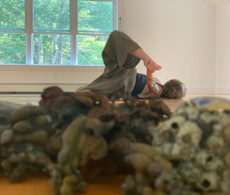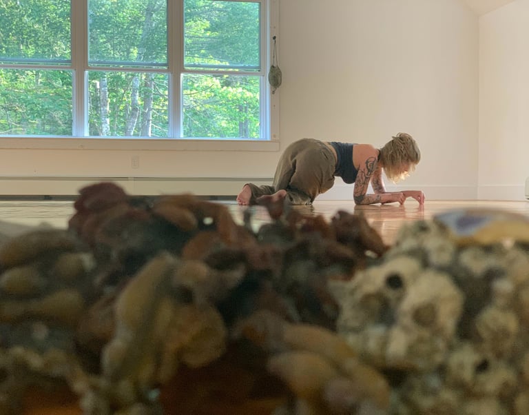 Mudwound was developed during my time as artist-in-residence at Homeport Art House, located on Coastal Maine. Mud as malleable, rich relic of knowledge, home, withering and withstanding. Wound as in pooling tides, weathered ground, never closing, never healing body of sea and land. A week of trudging to Combs Island, "limbcove", and various other coastal sites led to the creation of this work which processes the quiet cries of sea mouths, water creatures, barnacles, and all which burrow beneath earth's clay.